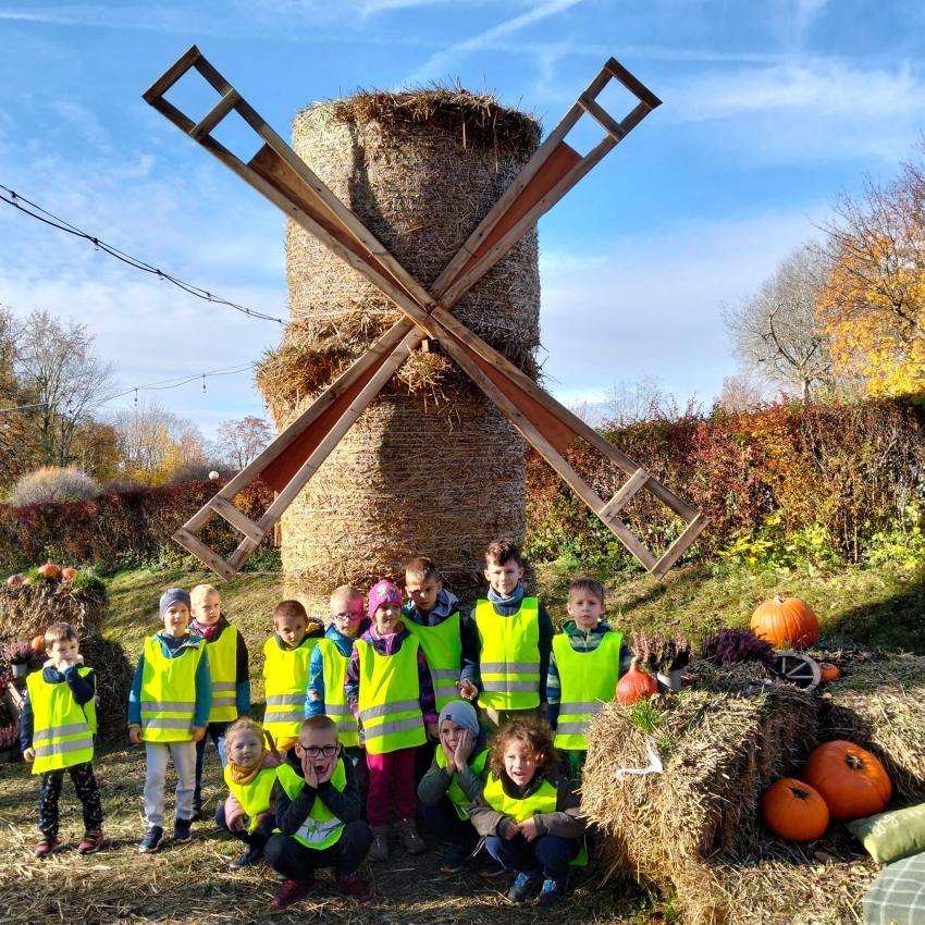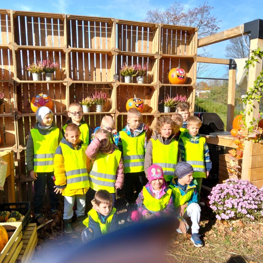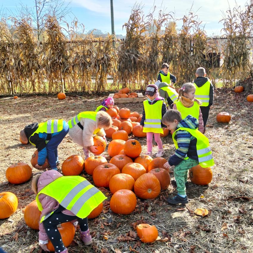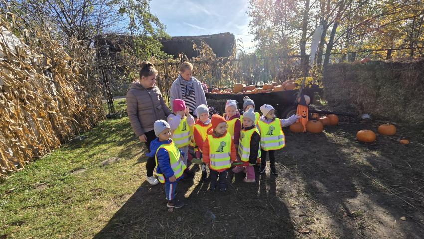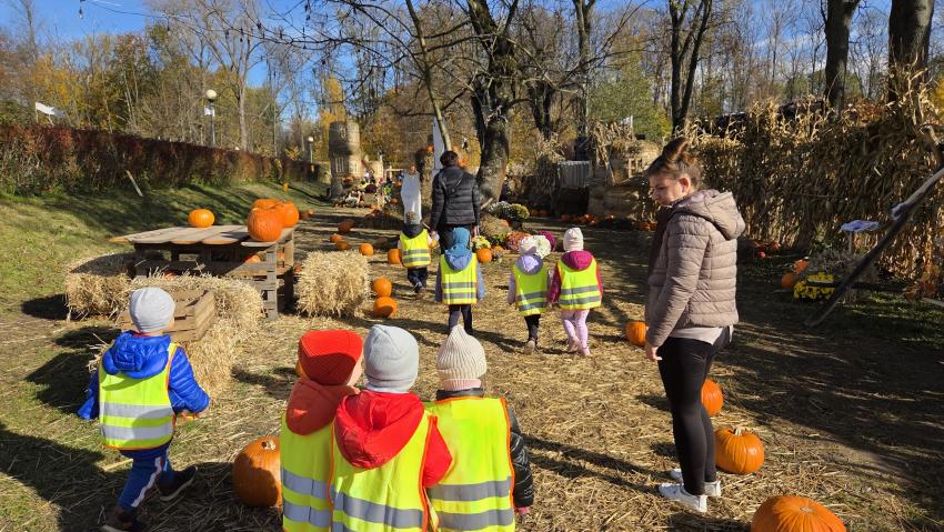 Dnia 30.10 odwiedziliśmy farmę " Dyniolandie '' nad Zalewem Nowohuckim. Na ogromnej przestrzeni wypełnionej setkami kolorowych okazów, podziwialiśmy dynie. Poznaliśmy ciekawostki o odmianach i zastosowaniach. W przygotowanych instaspotach zrobiliśmy piękne jesienne zdjęcia. Każde dziecko po wycieczce dostało dynie w prezencie.