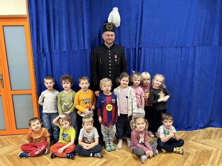 Dziś w przedszkolu odwiedził nas górnik pracujący w Kopalni Soli w Wieliczce. Opowiadał dzieciom o swojej pracy pod ziemią, o tym, jak wygląda kopalnia oraz jakie narzędzia są potrzebne do wydobywania soli. Pokazał elementy górniczego stroju i wyjaśnił znaczenie różnych symboli, np. pióropusza na czapce. Spotkanie było bardzo ciekawe i wzbudziło duże zainteresowanie najmłodszych.