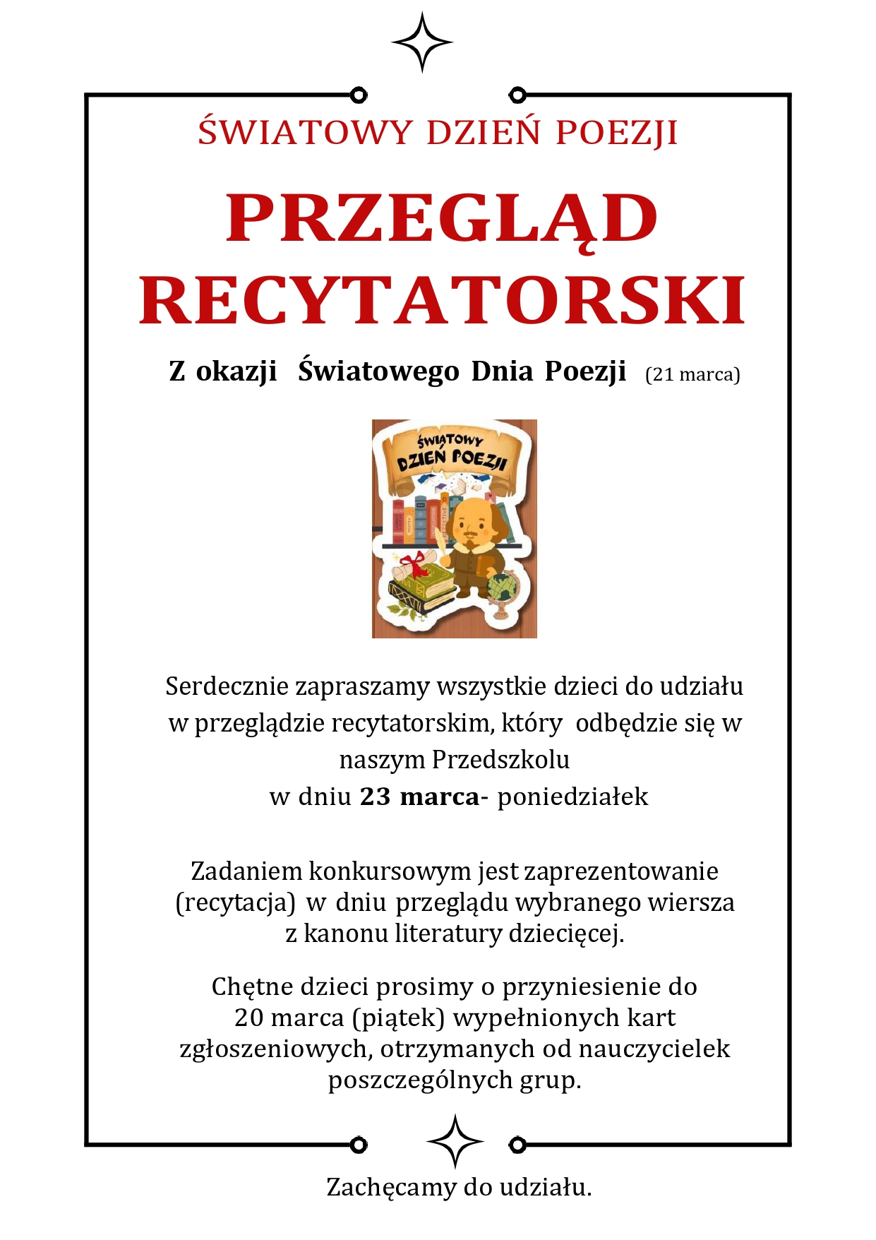 Serdecznie zapraszamy wszytkich Rodziców do włączenia się w organizowany na terenie naszego przedszkola w dniach od 23 marca do 1 kwietnia Kiermasz Wielkanocny. Propozycja własnoręcznego wykonania ozdób wielkanocnych, będzie miłym pretekstem do kultywowania świątecznej tradycji oraz kreatywnego sposobu spędzenia wspólnego czasu z dzieckiem.