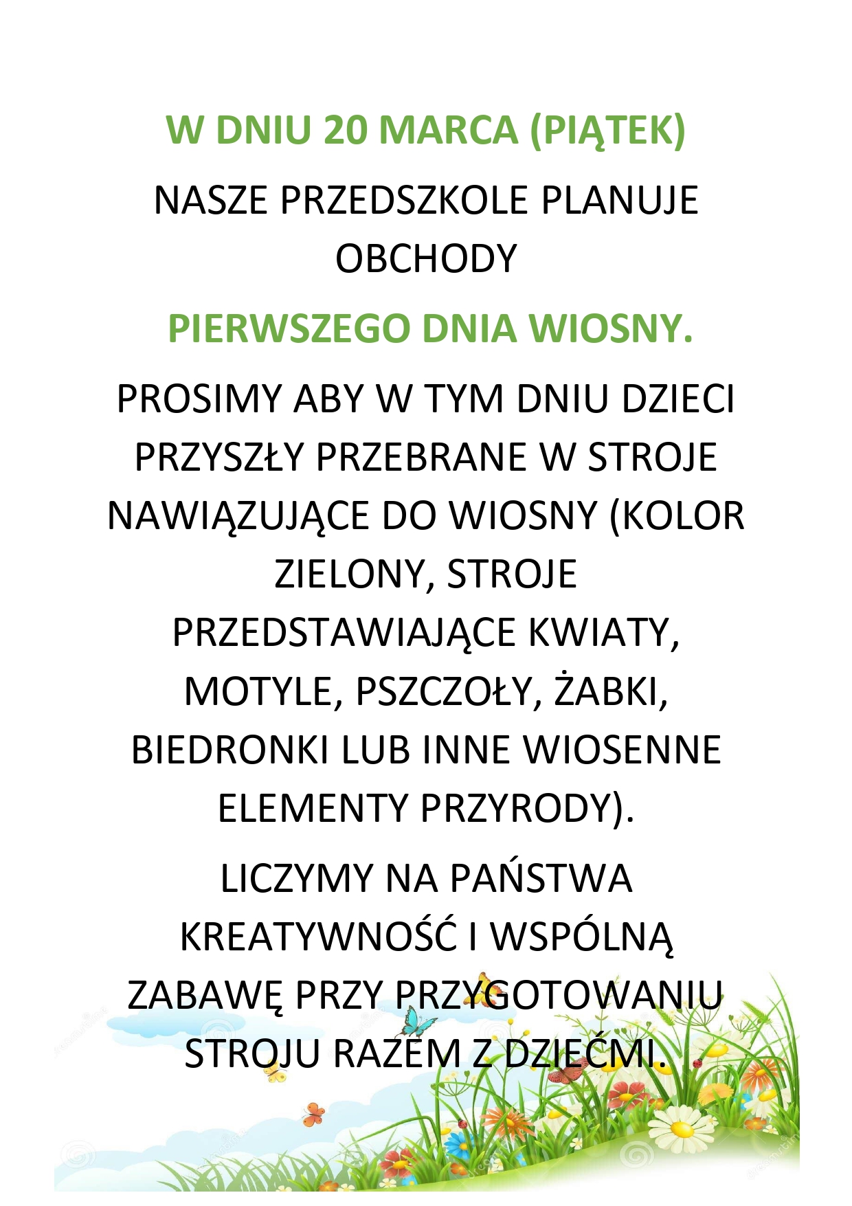 Pieniądze uzyskane ze sprzedaży zostaną wykorzystane na materiały plastyczne dla naszych przedszkolaków. Chętnych Rodziców, którzy chcieliby przygotować z dzieckiem w domu a później przekazać na Kiermasz różnorodne wielkanocne dekoracje, prosimy aby dostarczyli je do nauczycielek grup do dnia 20 marca (wraz z propozycją ceny).