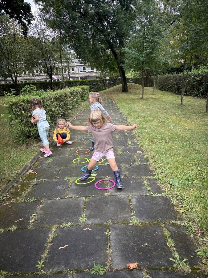 Grupa 2 i 3 podczas zabaw na świeżym powietrzu.