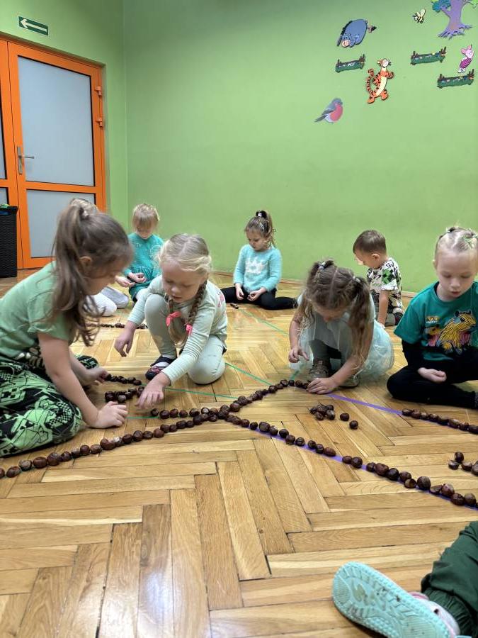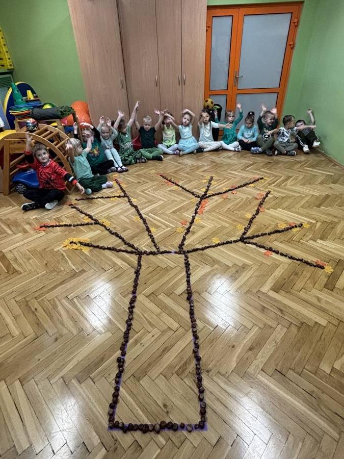 Dowiedzieliśmy się wielu ciekawostek, szumieliśmy jak liście na wietrze, ułożyliśmy własne Kasztanowe drzewo i zebraliśmy liście idąc po liniach gałęzi.