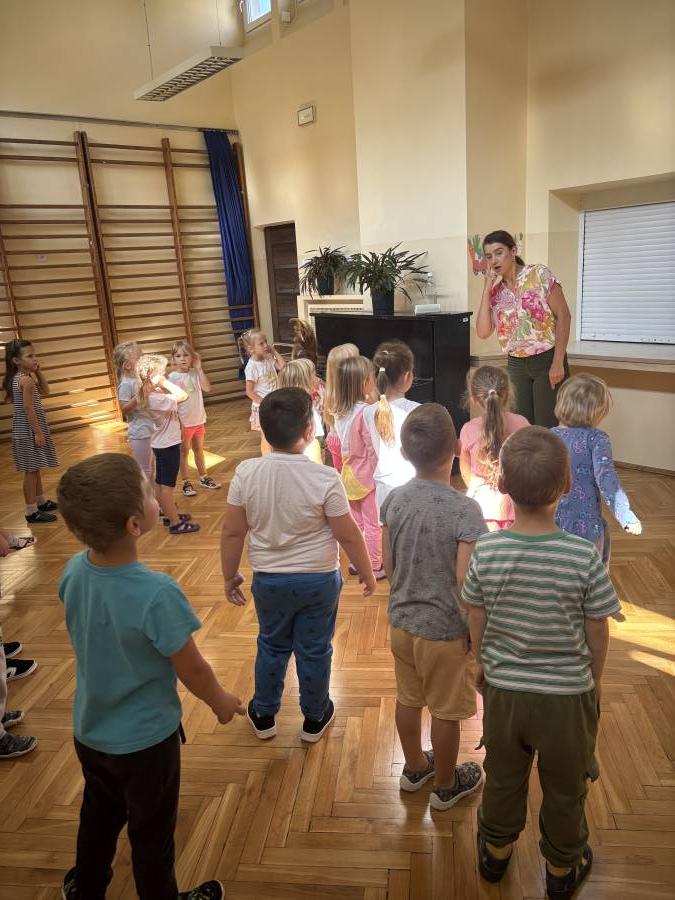Dziś odwiedziła nas mama Kai i Oskara, która podzieliła się z nami swoimi umiejętnościami, jakimi na codzień posługuje się w swojej zawodowej pracy. I takim oto sposobem mieliśmy wspaniałe zajęcia taneczno rytmiczne.
